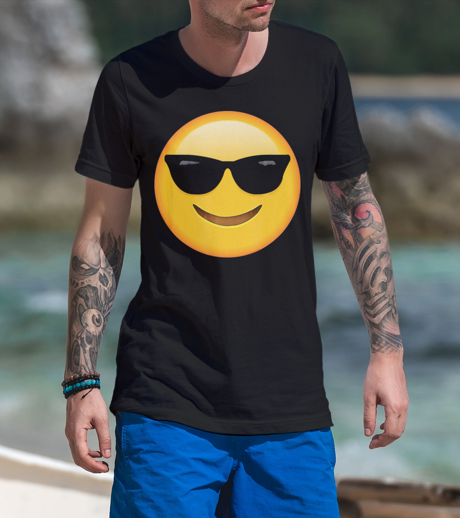 The Sunglasses Emoji T-shirt is designed for everyday wear and a consistent fit. Fabric is pre-shrunk ring-spun cotton with durable stitching. See the size chart below for exact measurements.