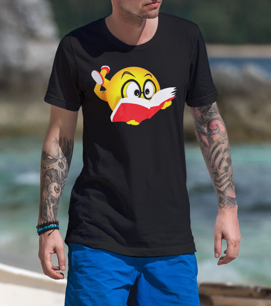 Nerdy Reading Emoji Glasses Book T-Shirt