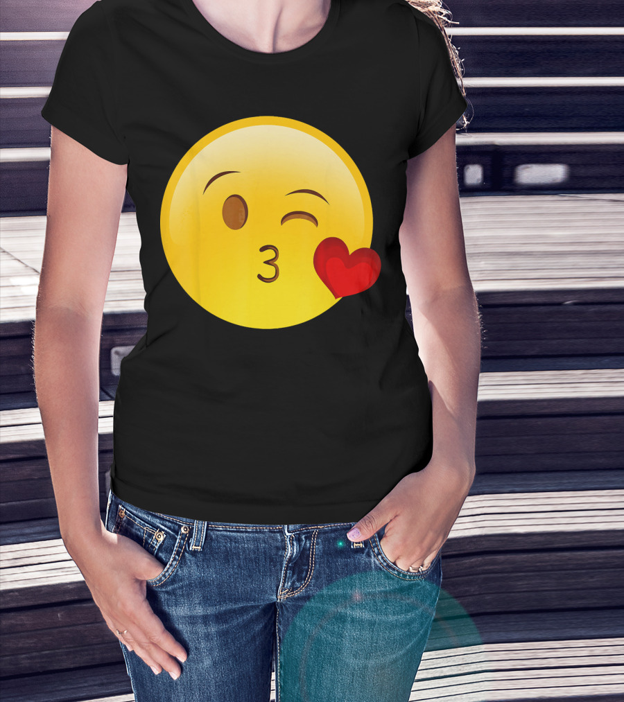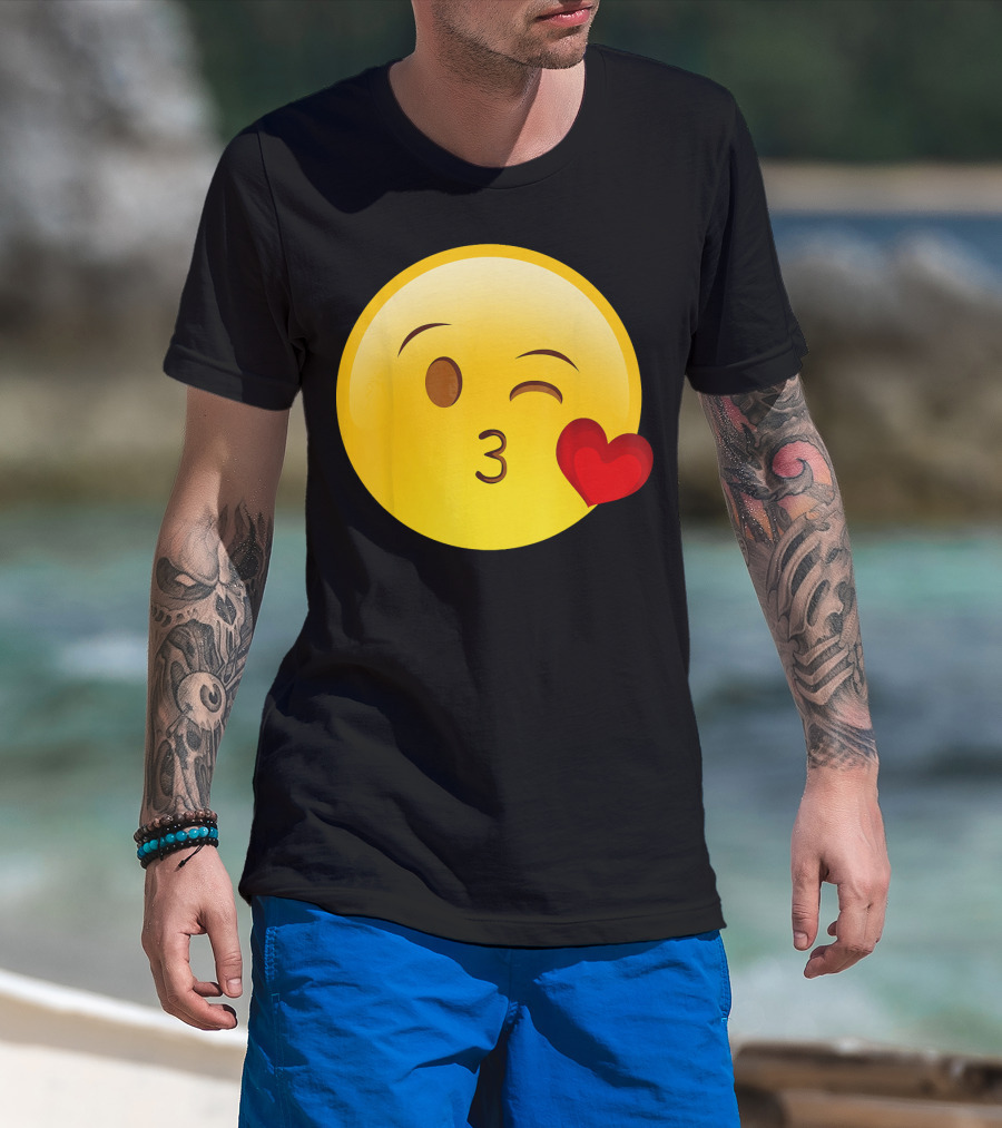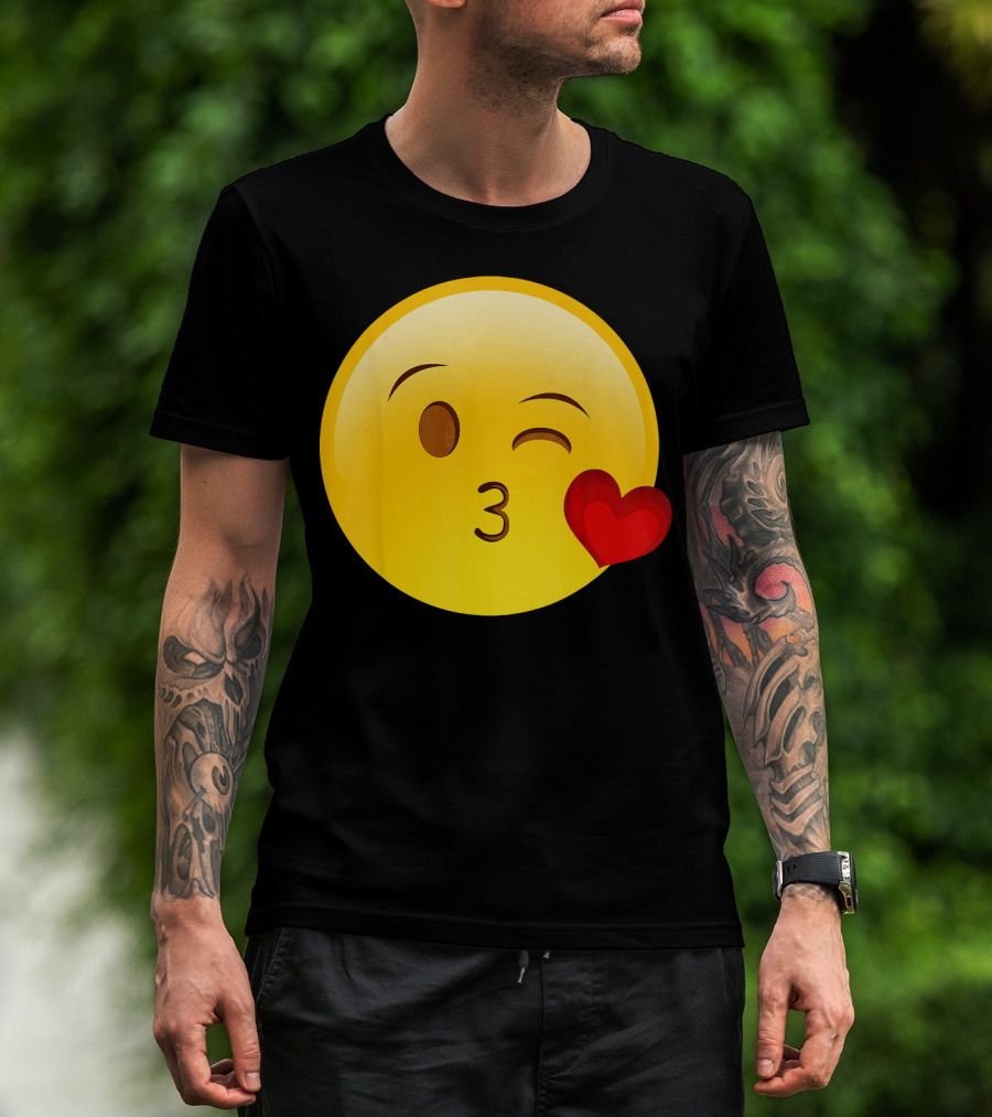 Emoji Throwing A Kiss Puckered Lips Blow Winking Face With Heart T-Shirt