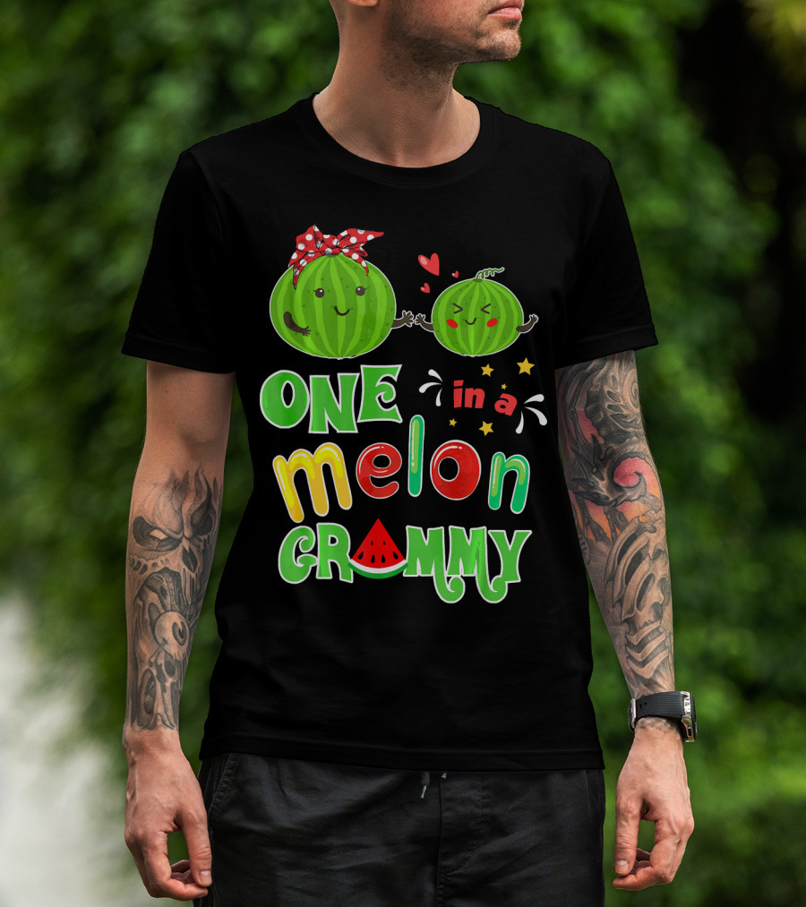 The One in a Melon Grammy Summer Tropica T-shirt is designed for everyday wear and a consistent fit. Fabric is pre-shrunk ring-spun cotton with durable stitching. See the size chart below for exact measurements.