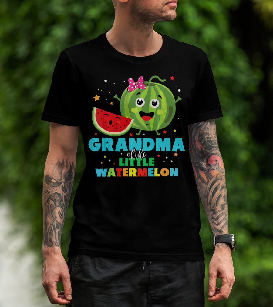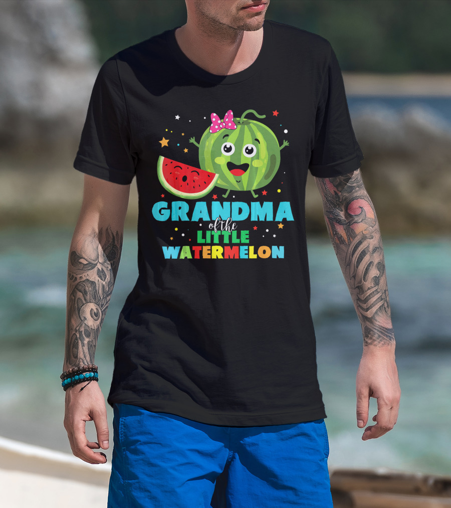 Grandma Of The Little Watermelon With Cute Cartoon Watermelon And Stars T-Shirt