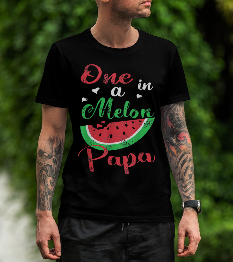 One In A Melon Papa Mens Watermelon Heart Graphics T-Shirt