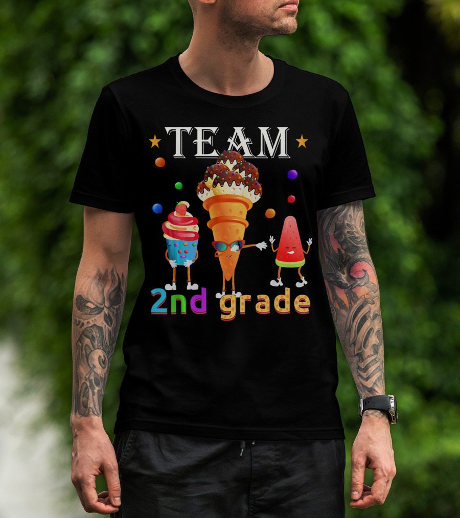 Team 2nd Grade Ice Cream Cone And Watermelon Characters T-Shirt