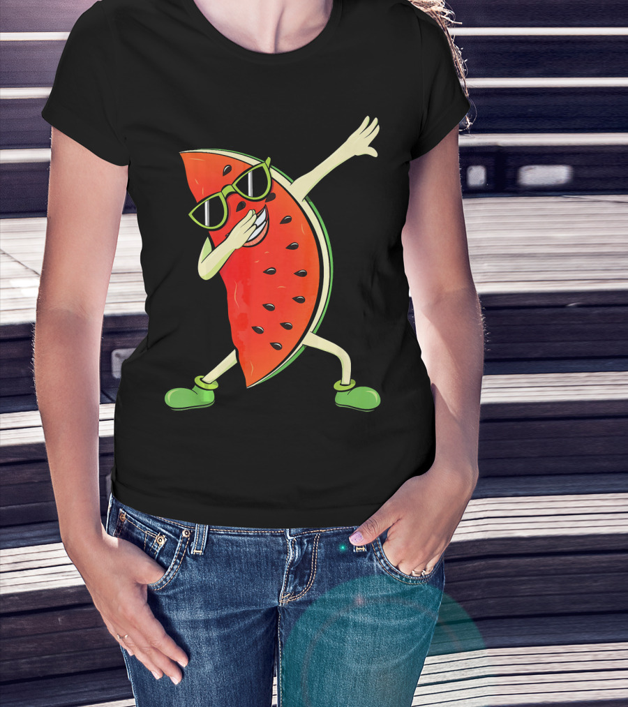 Dabbing Watermelon Slice Kawaii Melon Summer With Sunglasses T-Shirt