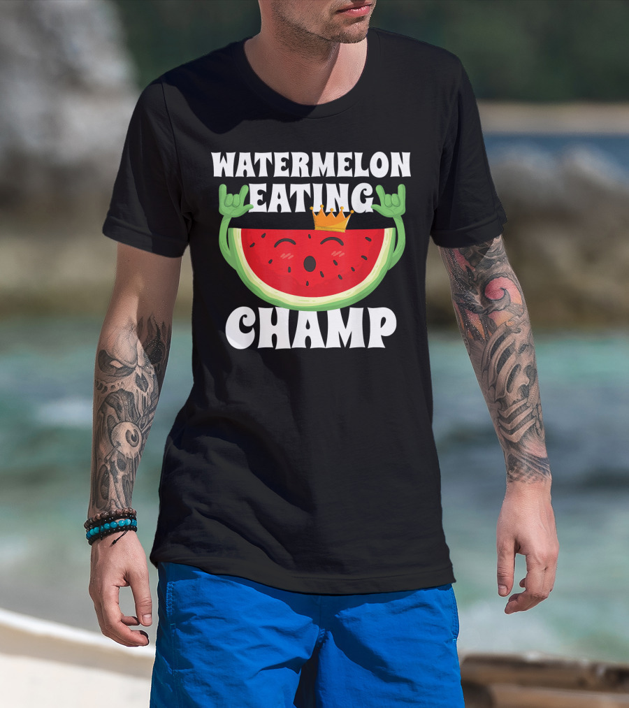 Watermelon Eating Champ Melon Contest Co King With Crown Celebrating Victory T-Shirt