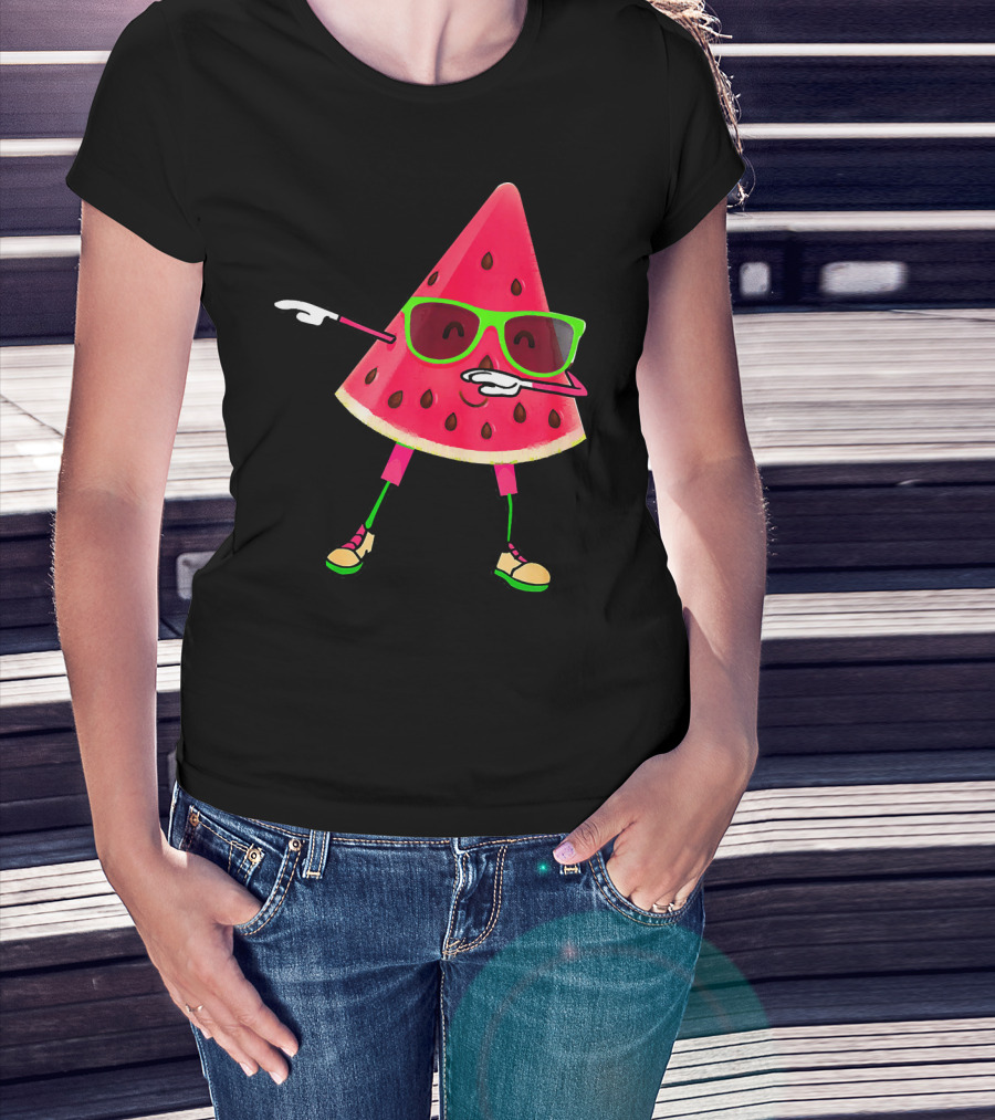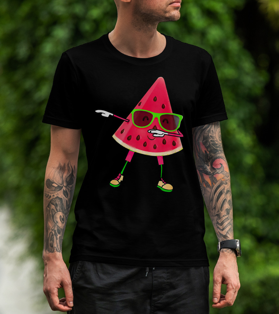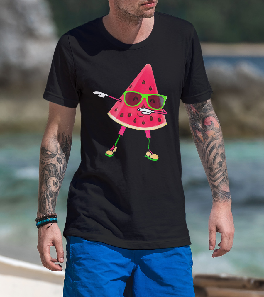 Dabbing Watermelon Funny Watermelon Slice With Sunglasses T-Shirt