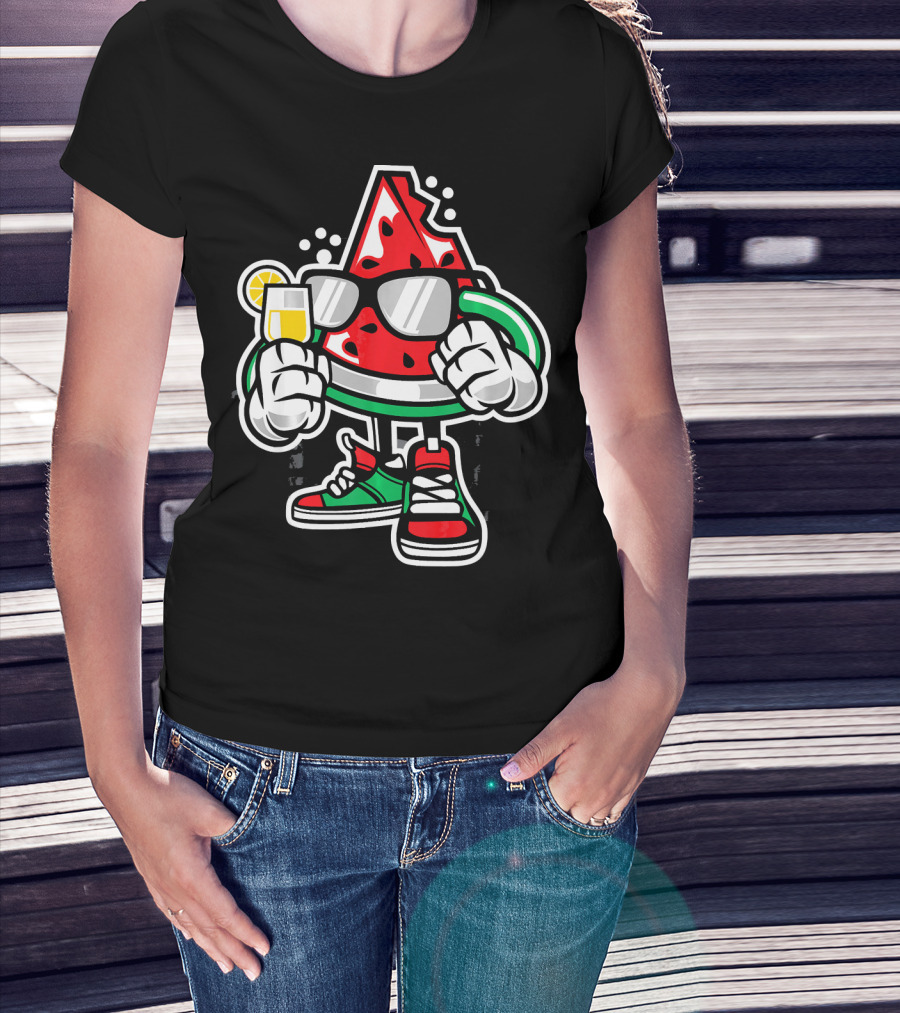 The Watermelon Lover Summer Time Graffiti Cool Slice with Shades and Sneakers T-shirt is designed for everyday wear and a consistent fit. Fabric is pre-shrunk ring-spun cotton with durable stitching. See the size chart below for exact measurements.