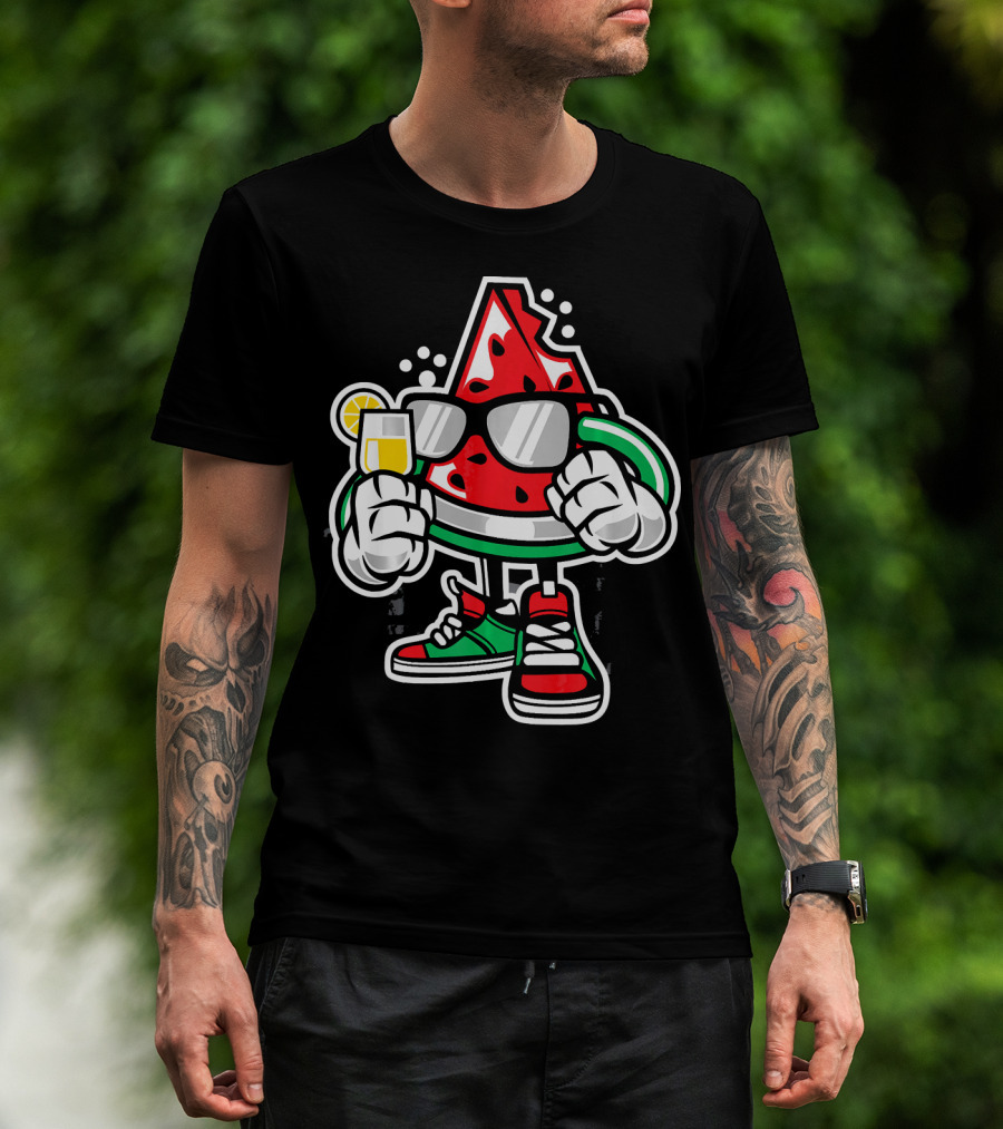 Watermelon Lover Summer Time Graffiti Cool Slice With Shades And Sneakers T-Shirt