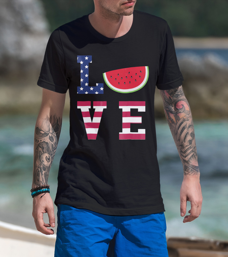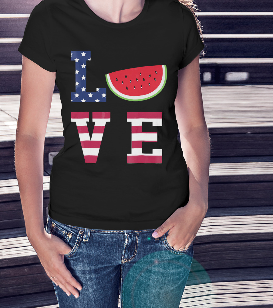 LOVE Fourth Of July Stars Stripes Watermelon T-Shirt