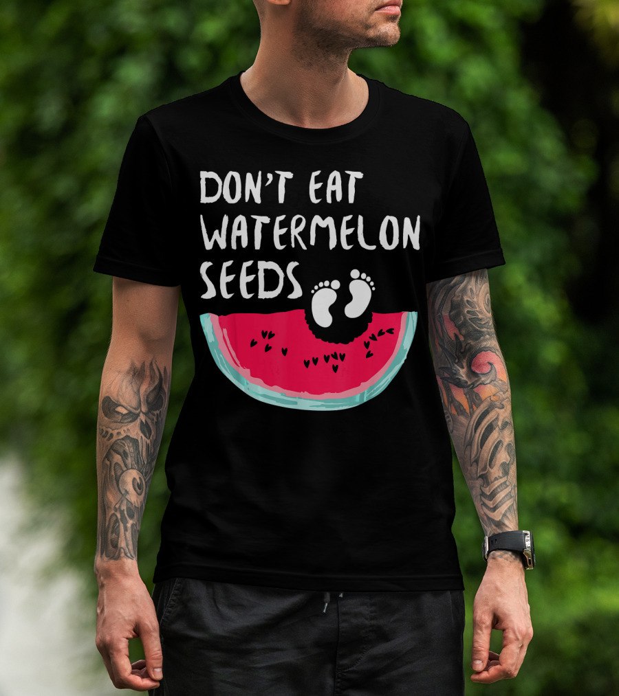 DON'T EAT WATERMELON SEEDS BABY ANNOUNCEMENT FOOTPRINTS T-Shirt