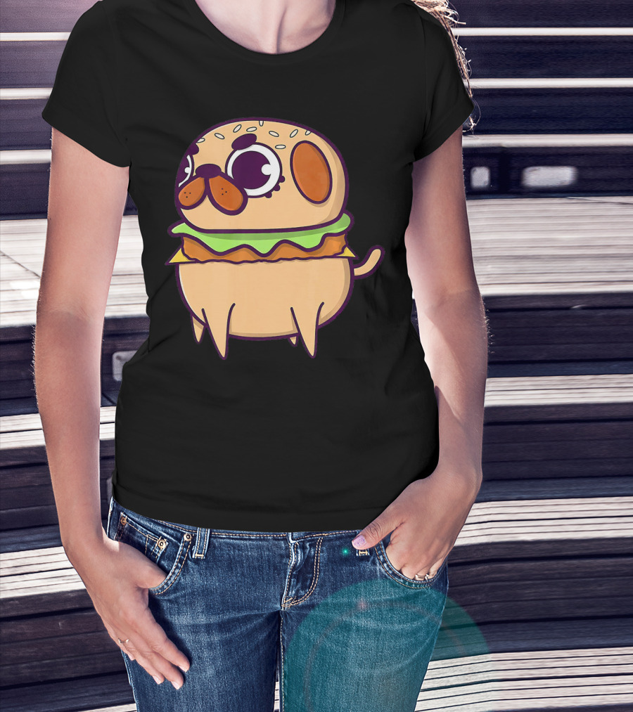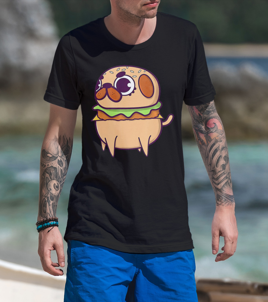 Cute Pug Hamburger Funny Pug Burger Love T-Shirt