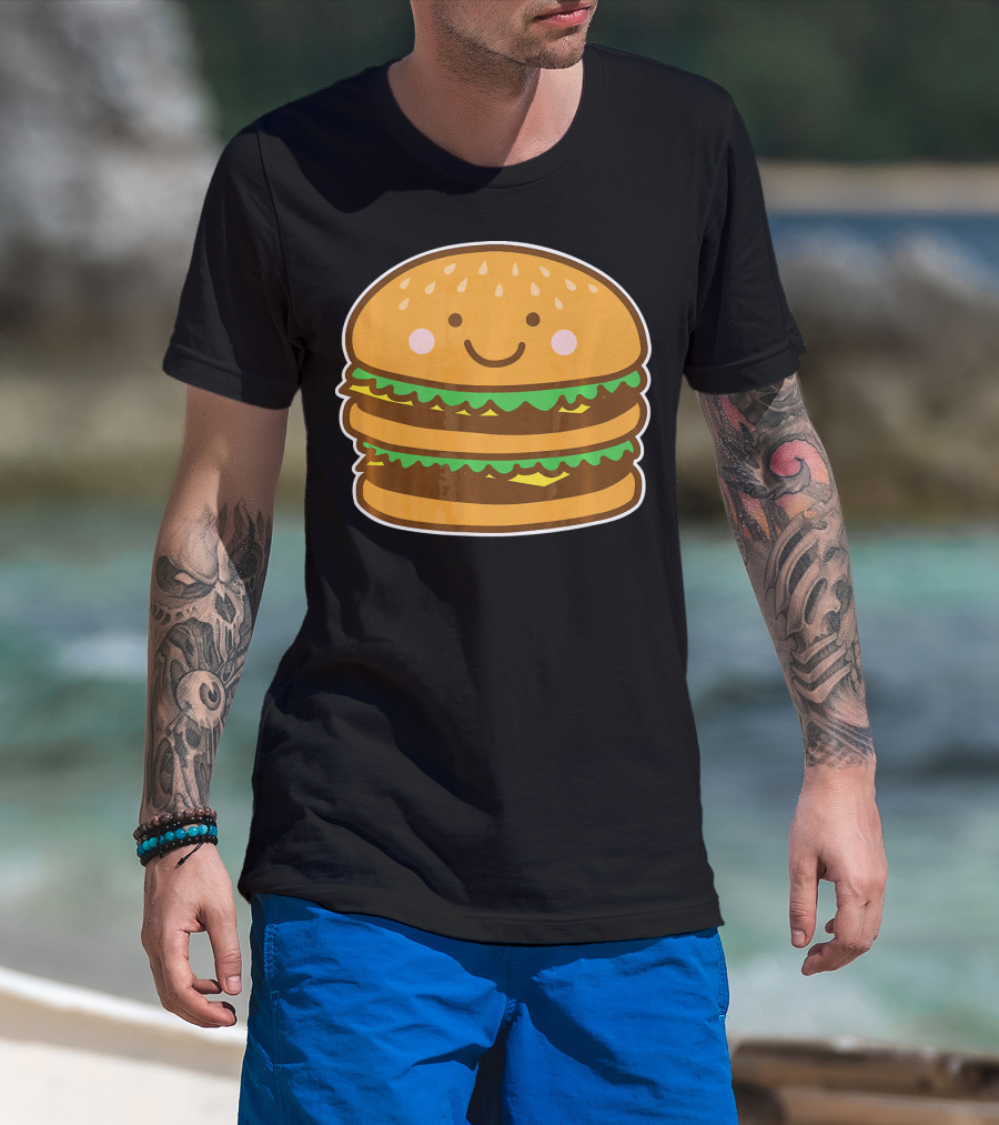 Funny Cute Burger Smiley Face Halloween Costume T-Shirt