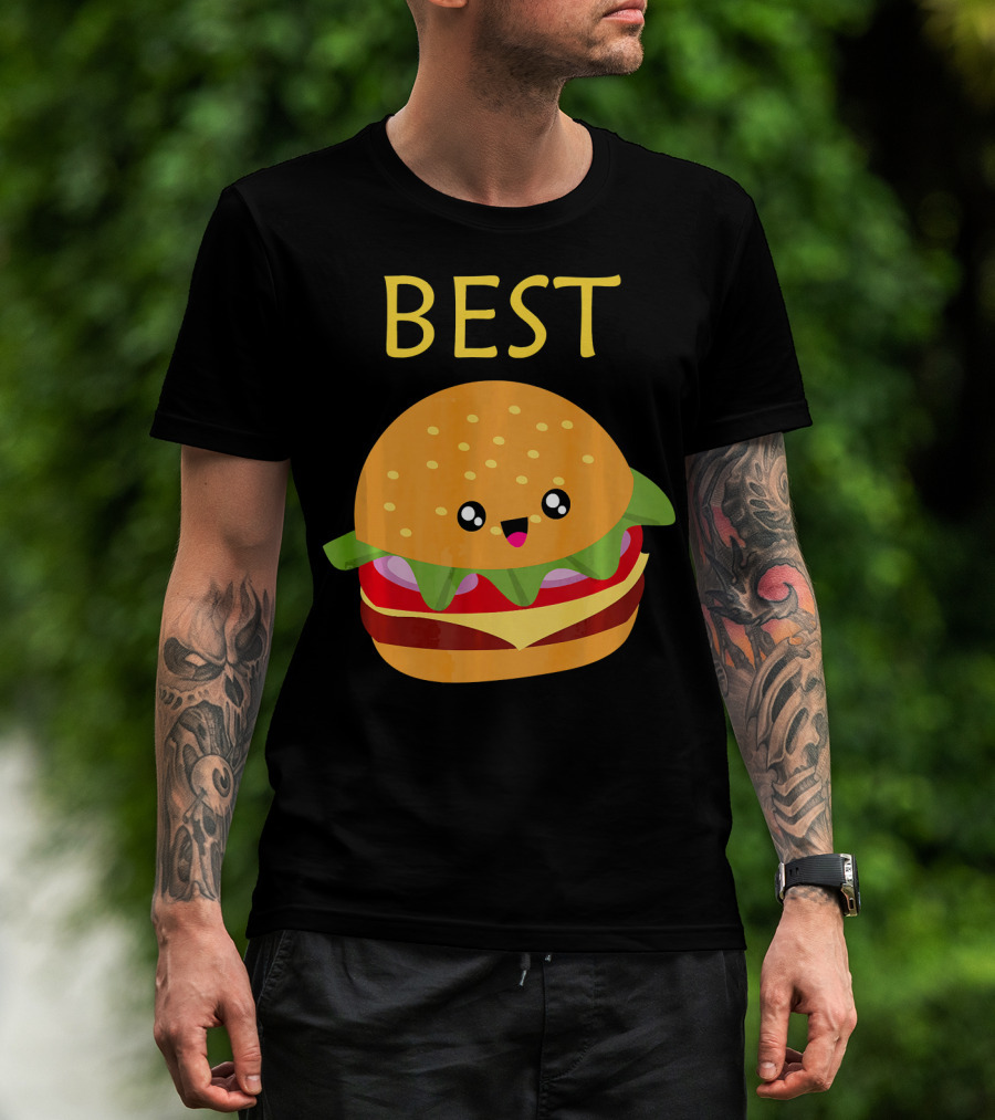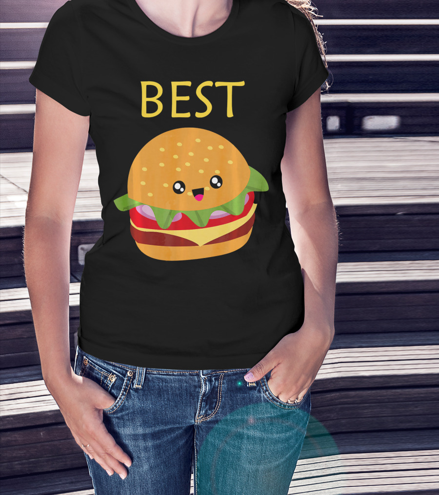 The BEST Matching Set Burger and Fries T-shirt is designed for everyday wear and a consistent fit. Fabric is pre-shrunk ring-spun cotton with durable stitching. See the size chart below for exact measurements.
