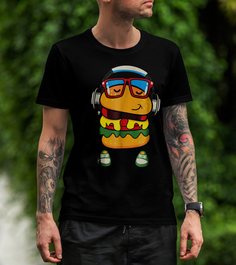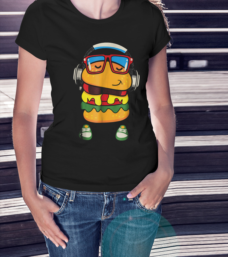 Dancing Hamburger With Headphones And Glasses T-Shirt