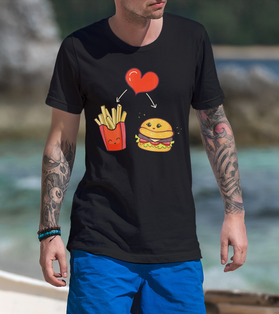 Burger Fries Kids Kawaii Heart Cute Food Lovers T-Shirt