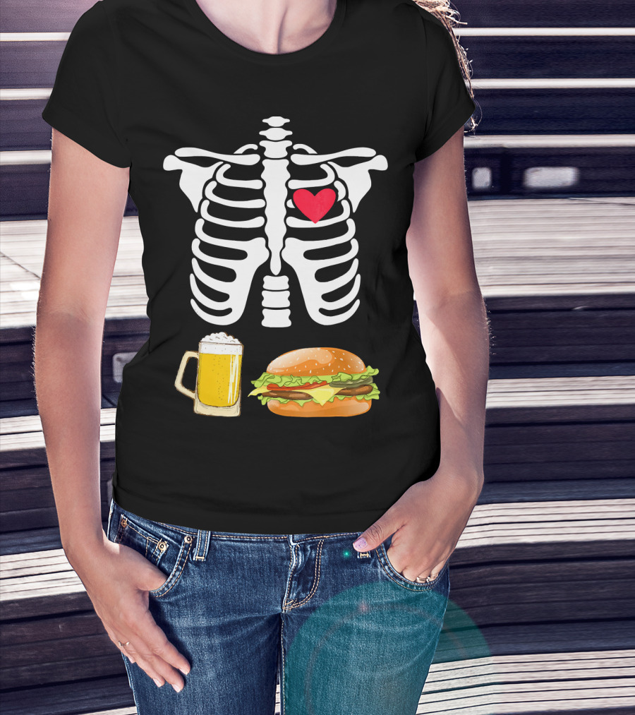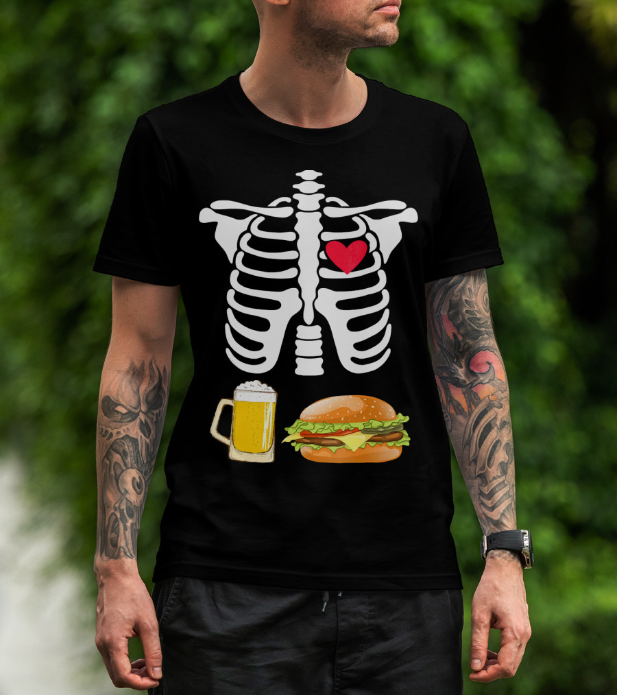 Beer And Burger Heart Ribcage Skeleton T-Shirt