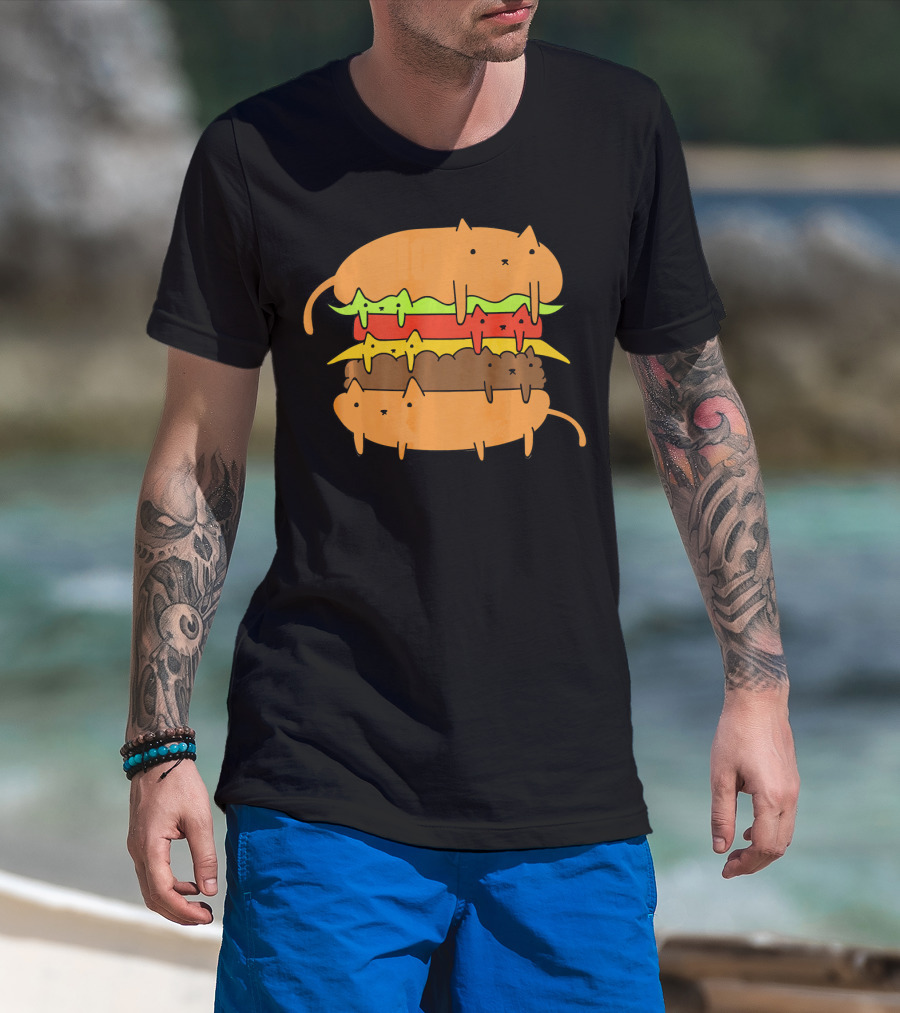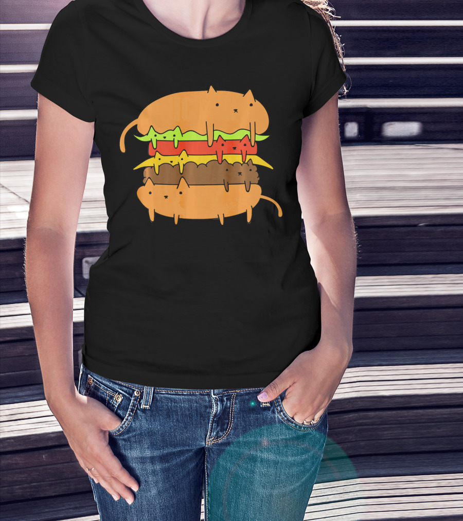 Cute Kawaii Cat Cheese Burger Adorable Layers T-Shirt