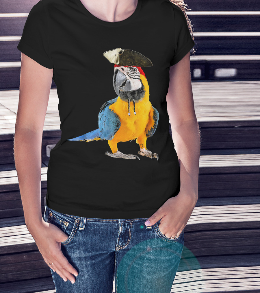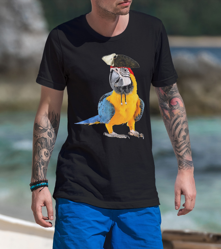 Parrot Of The Caribbean Bird Pirate Hall Macaw With Tricorn Hat T-Shirt