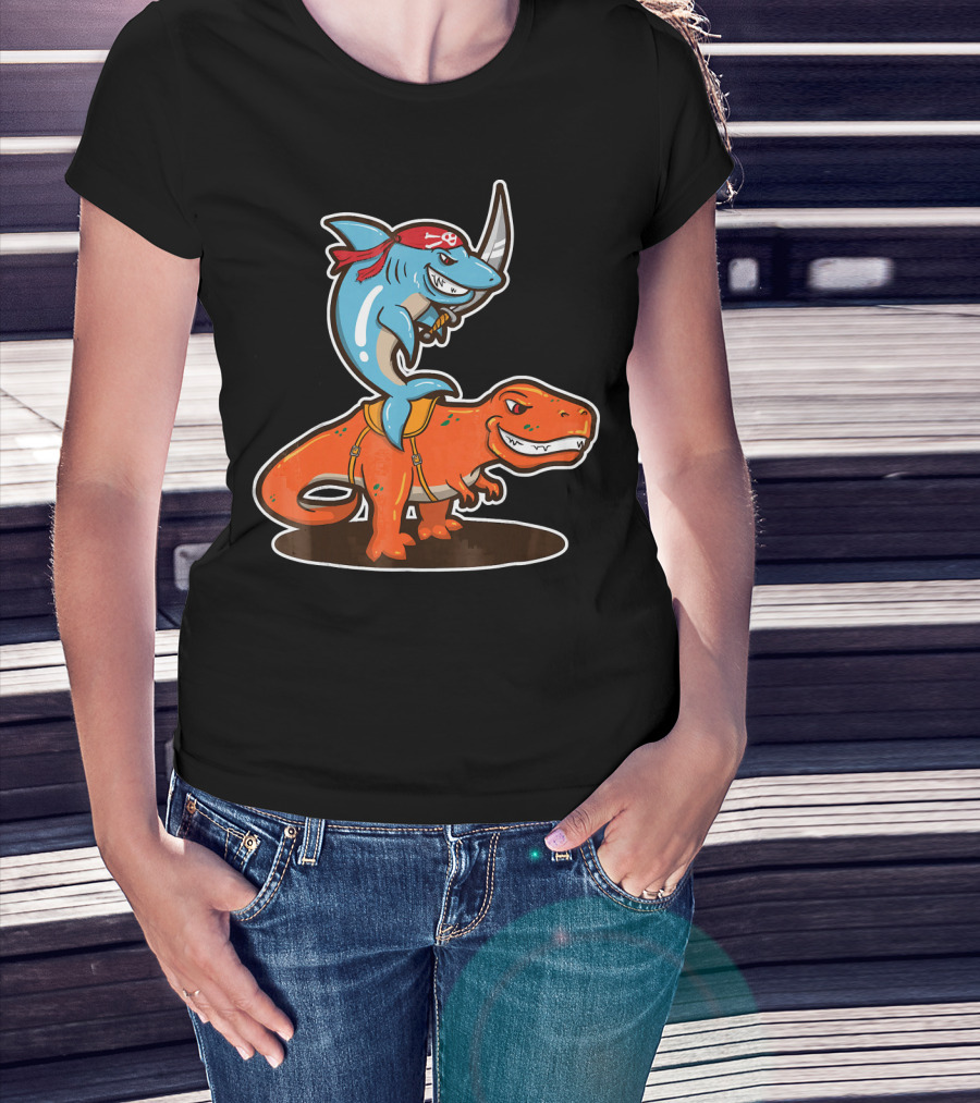 Pirate Shark Riding A T-Rex Dinosaur Adventure T-Shirt