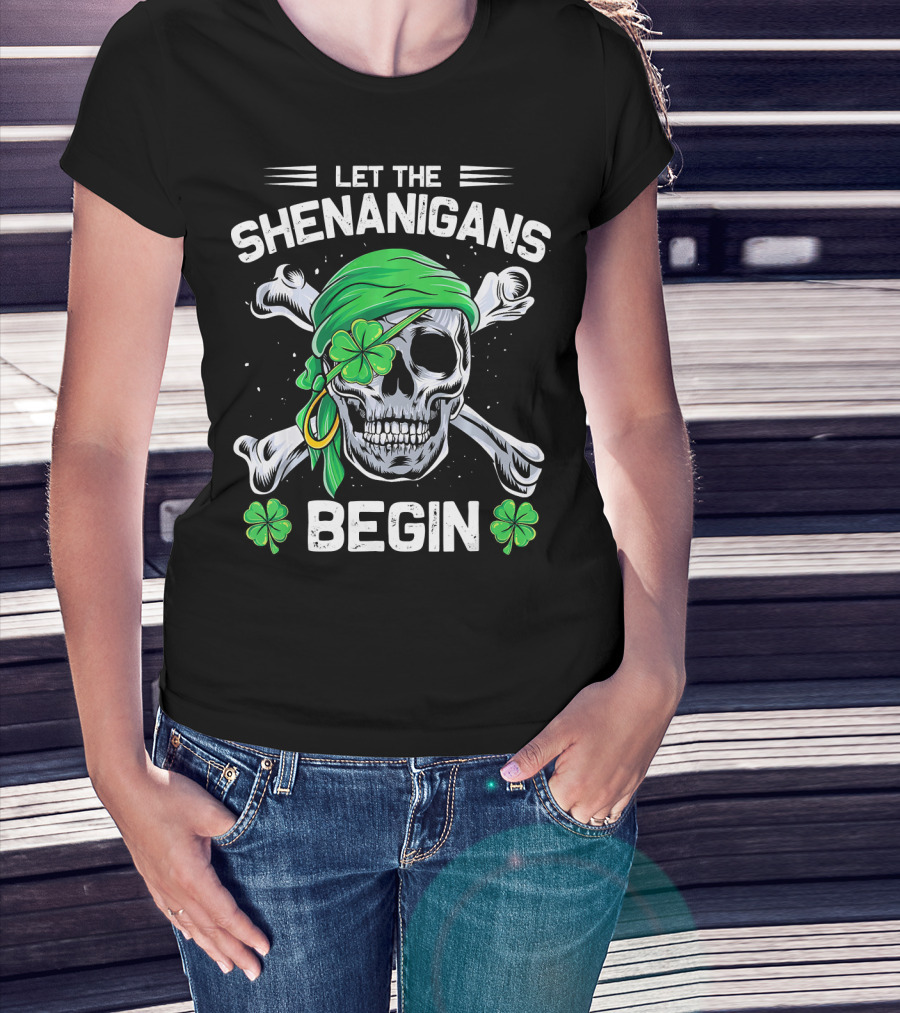 Let The Shenanigans Begin Skull And Shamrock St Patricks Day T-Shirt