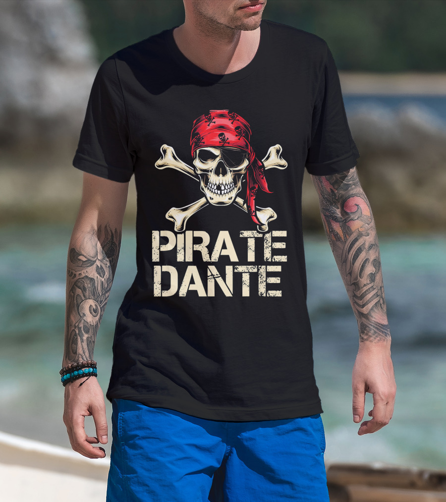 PIRATE DANTE Skull And Crossbones Red Bandana Halloween Birthday T-Shirt
