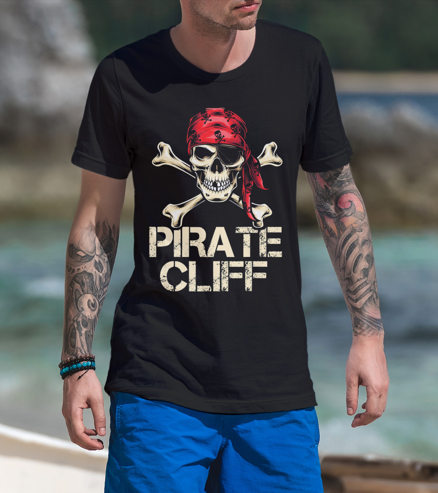 PIRATE CLIFF Skull And Crossbones Red Bandana T-Shirt