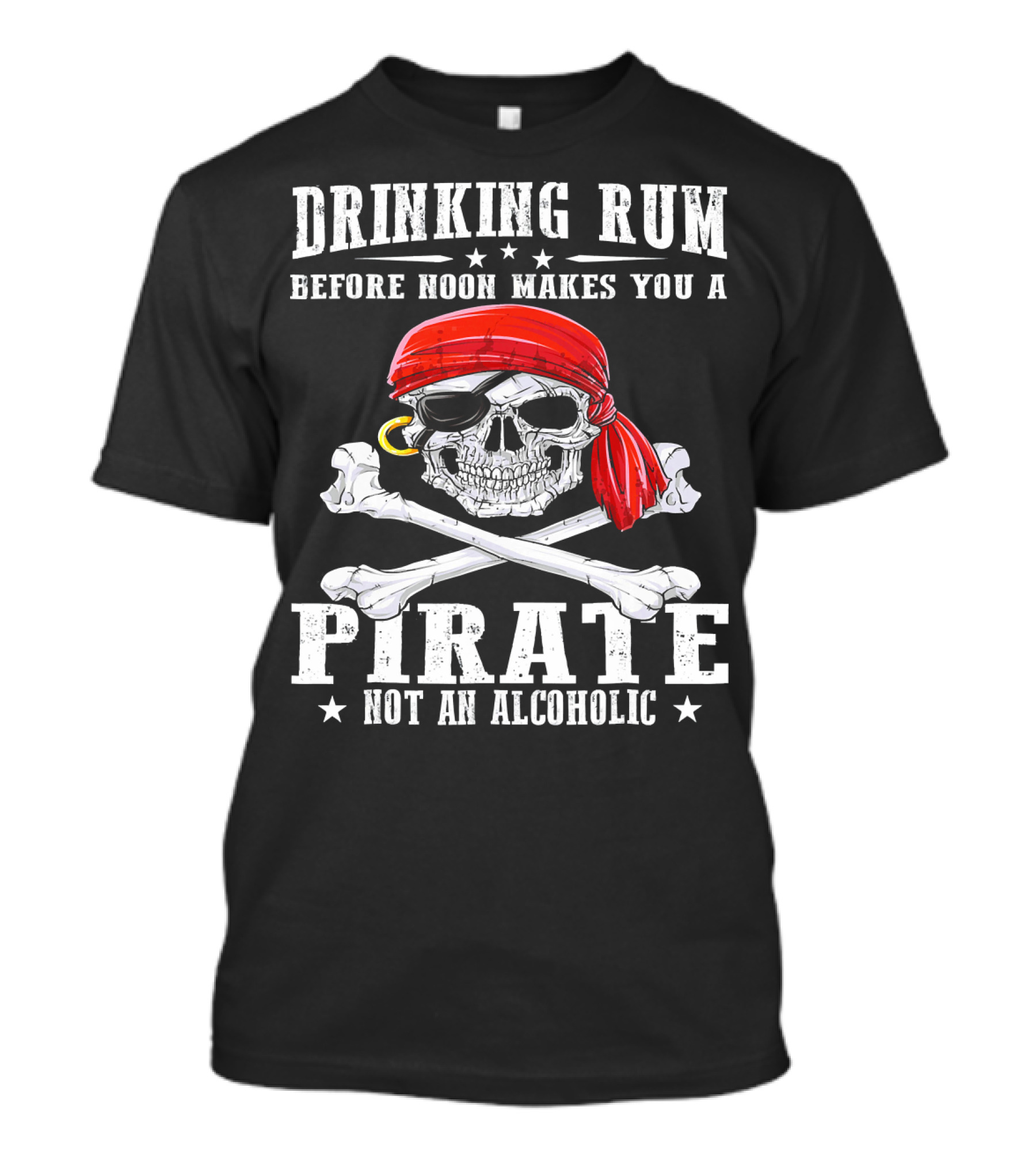 The Drinking Rum Before Noon Makes You a Pirate Not an Alcoholic Skull Crossbones Red Bandana T-shirt is designed for everyday wear and a consistent fit. Fabric is pre-shrunk ring-spun cotton with durable stitching. See the size chart below for exact measurements.