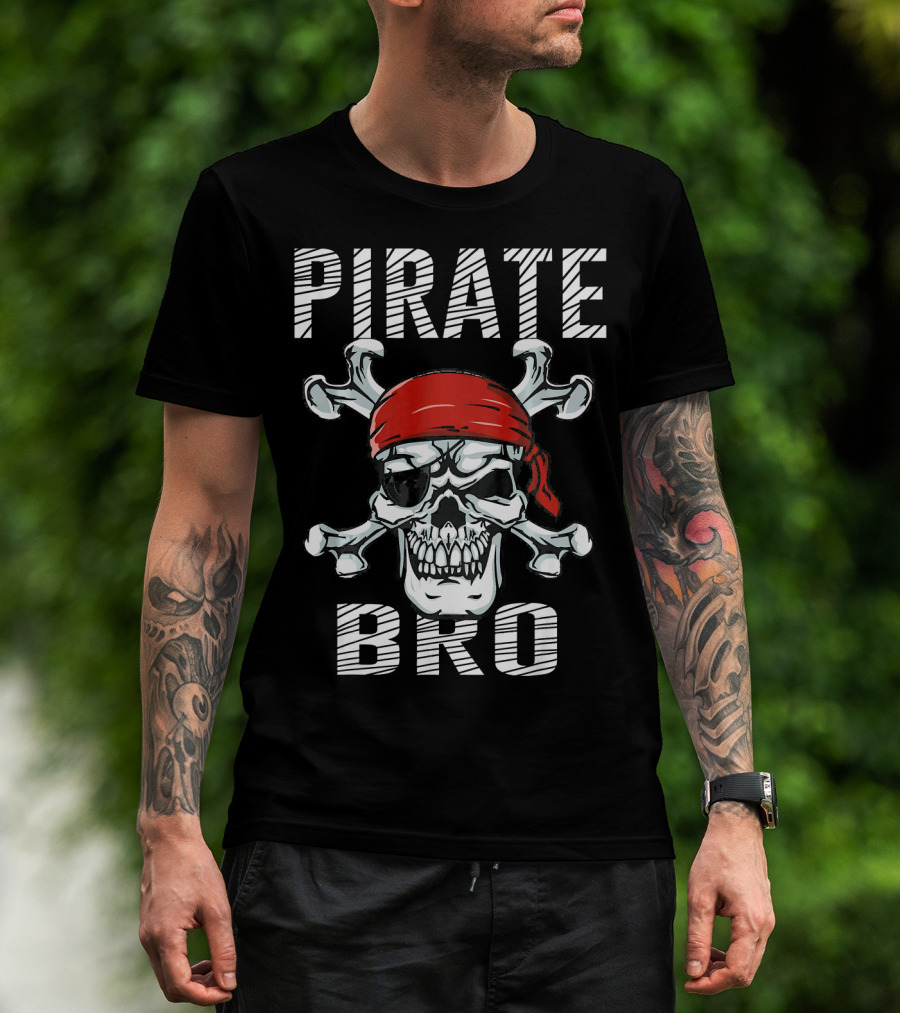 Pirate Bro Skull With Crossbones And Red Bandana T-Shirt