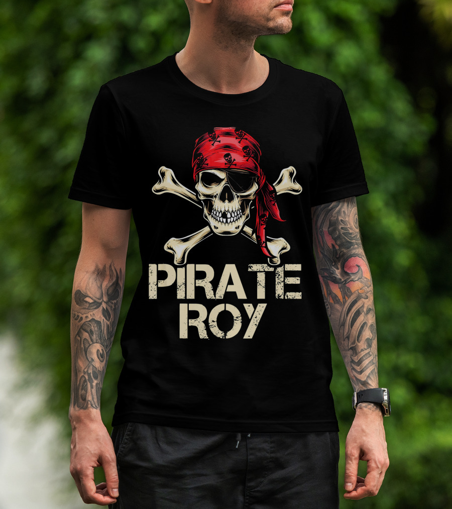 PIRATE ROY Skull Crossbones Red Bandana Vintage Funny Birthday T-Shirt