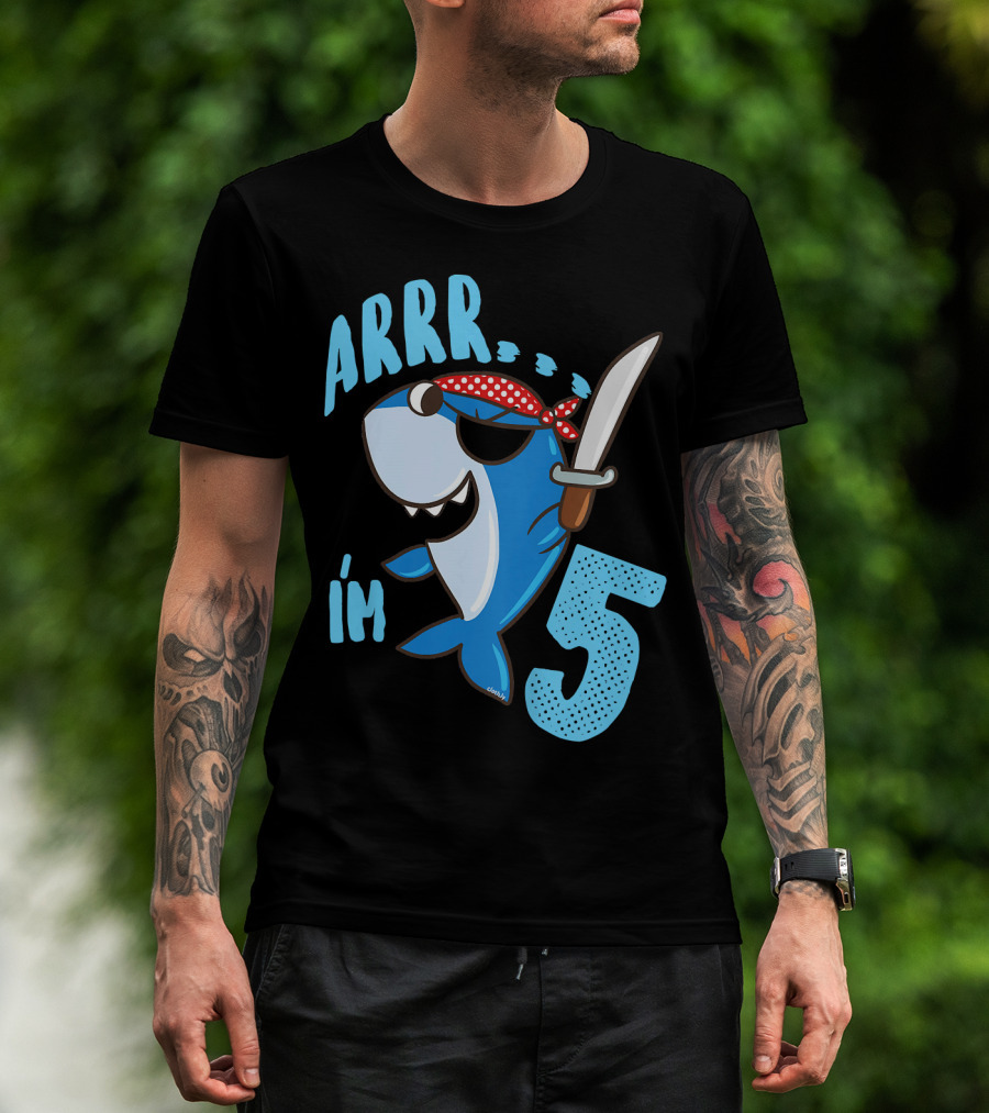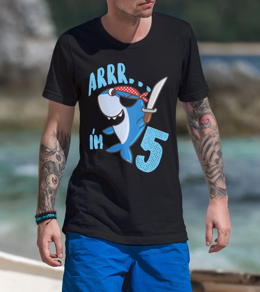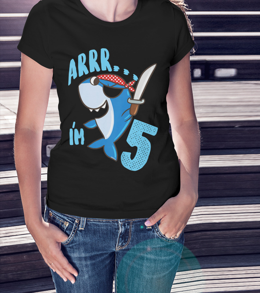 ARRR I'm 5 Boys Shark Pirate Birthday Idea T-Shirt