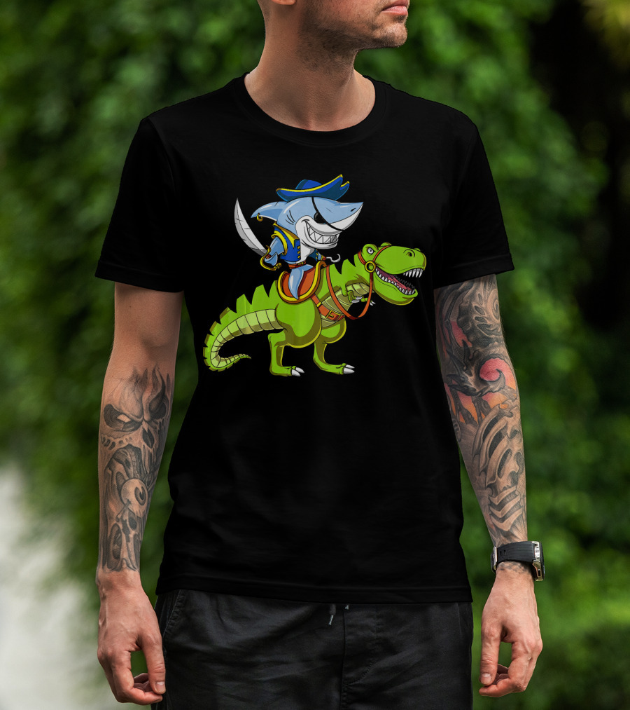 Shark Pirate On T-Rex Dinosaur T-Shirt