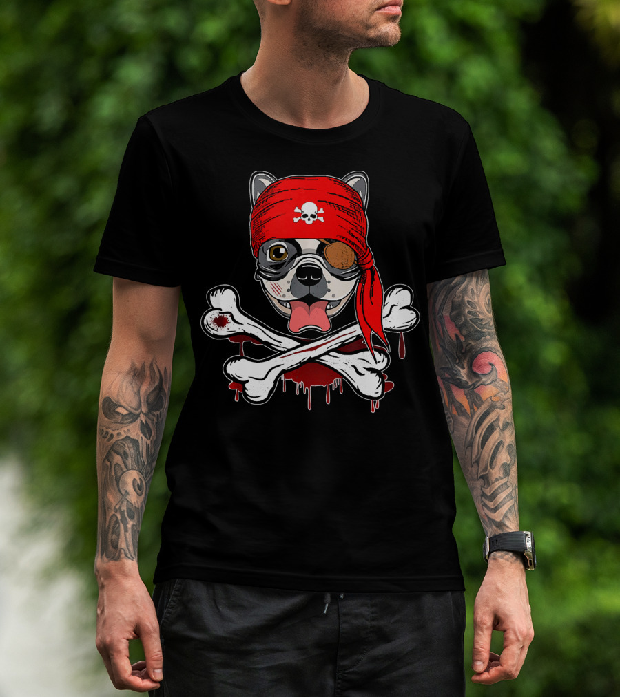 Funny Pirate French Bulldog With Skull Bandana And Crossbones T-Shirt