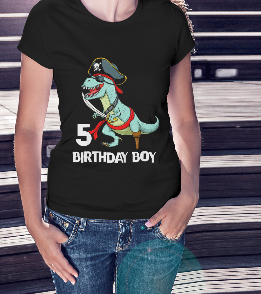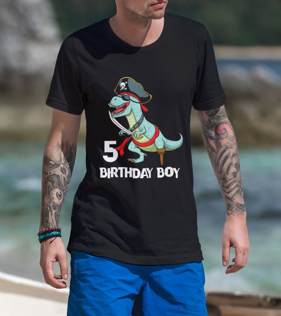 5 Birthday Boy Kids Pirate Dinosaur Rex Tyrannosaurus T-Shirt