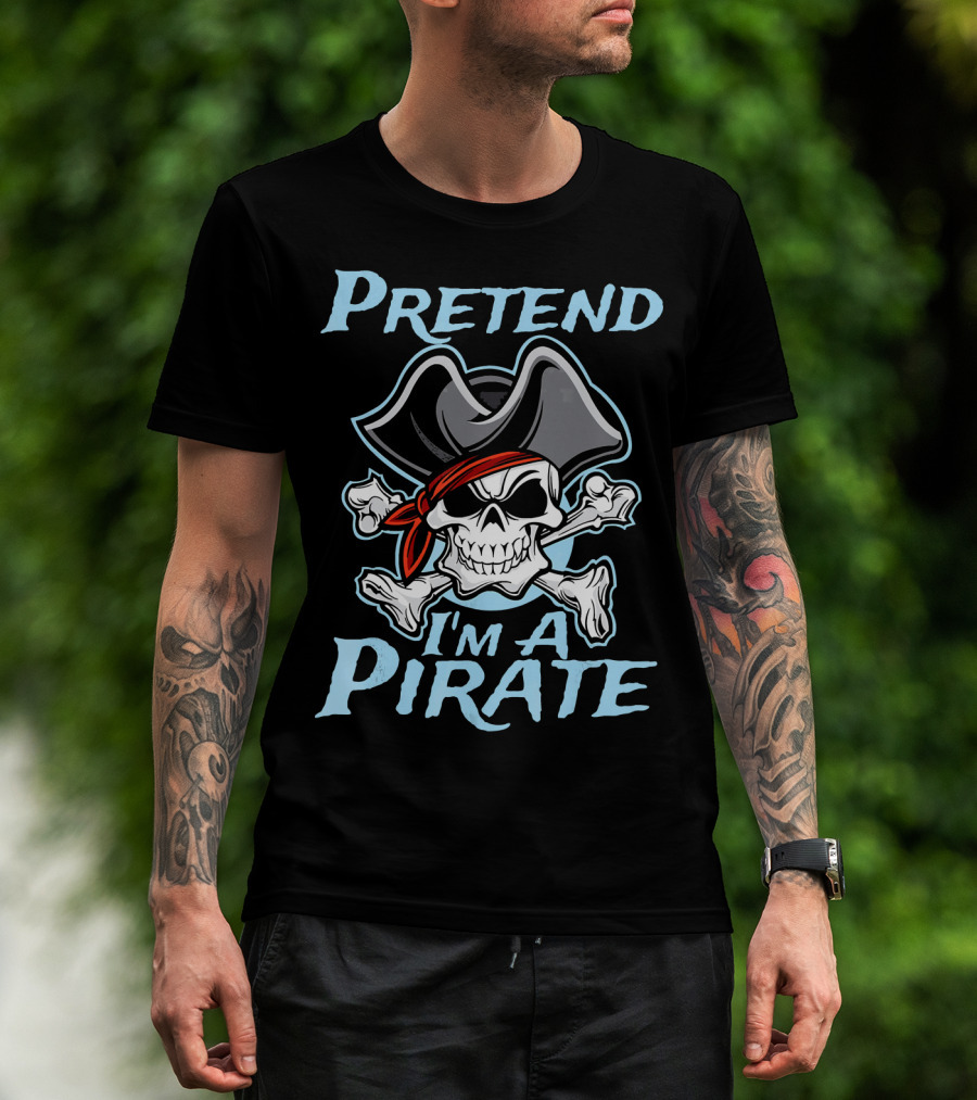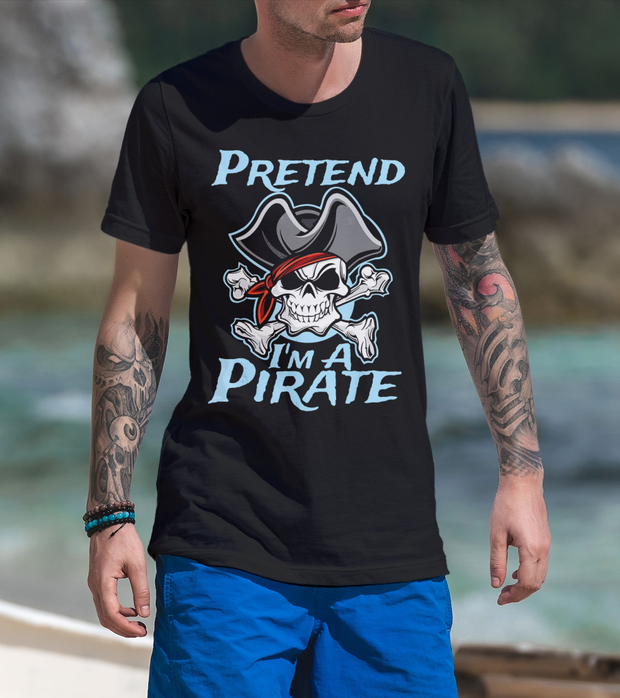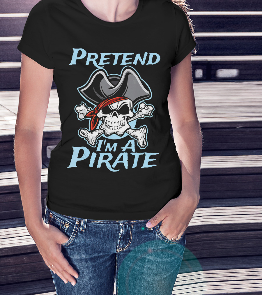 Pretend I'm A Pirate Skull Crossbones Hat Halloween Pirate Day T-Shirt