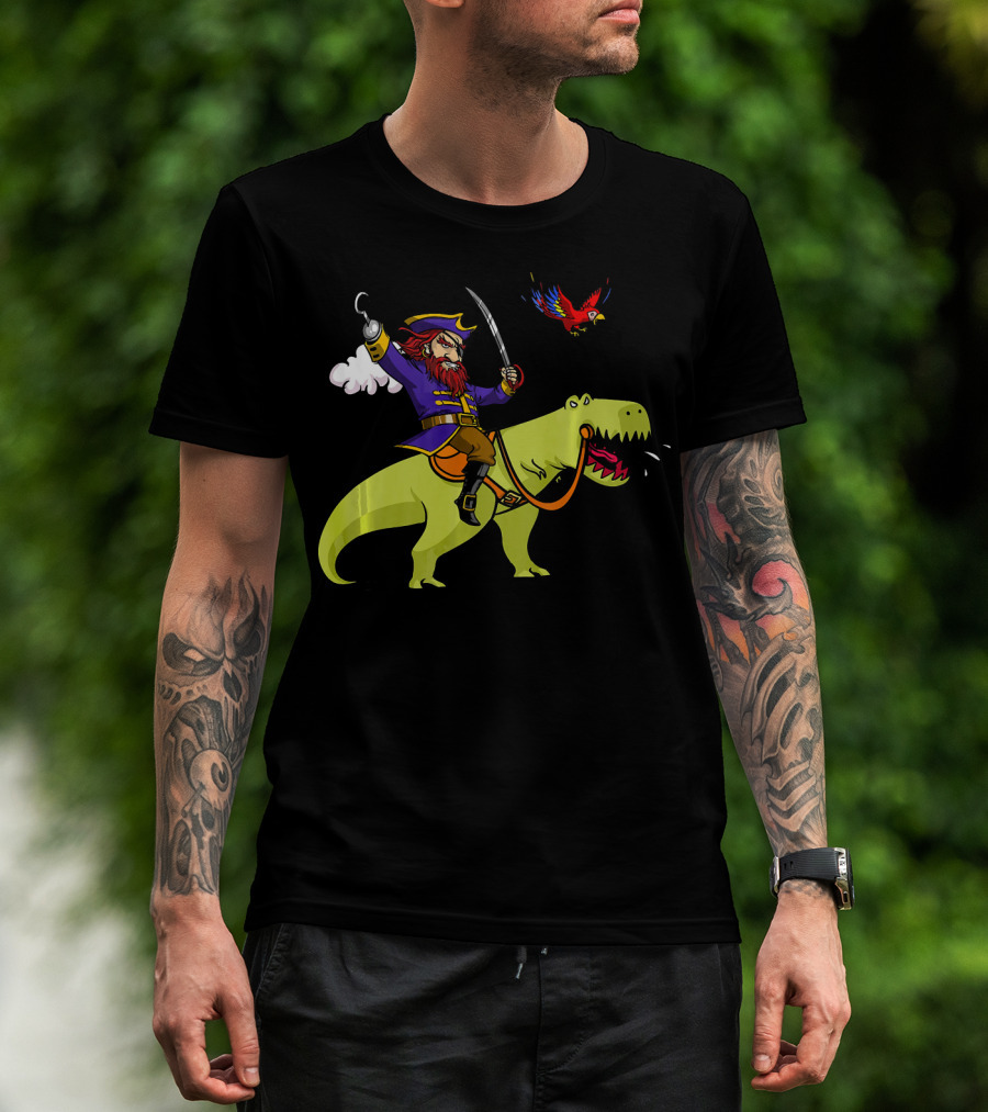 Pirate Sailor Rides T-Rex Dinosaur With Parrot T-Shirt