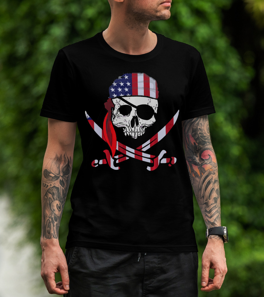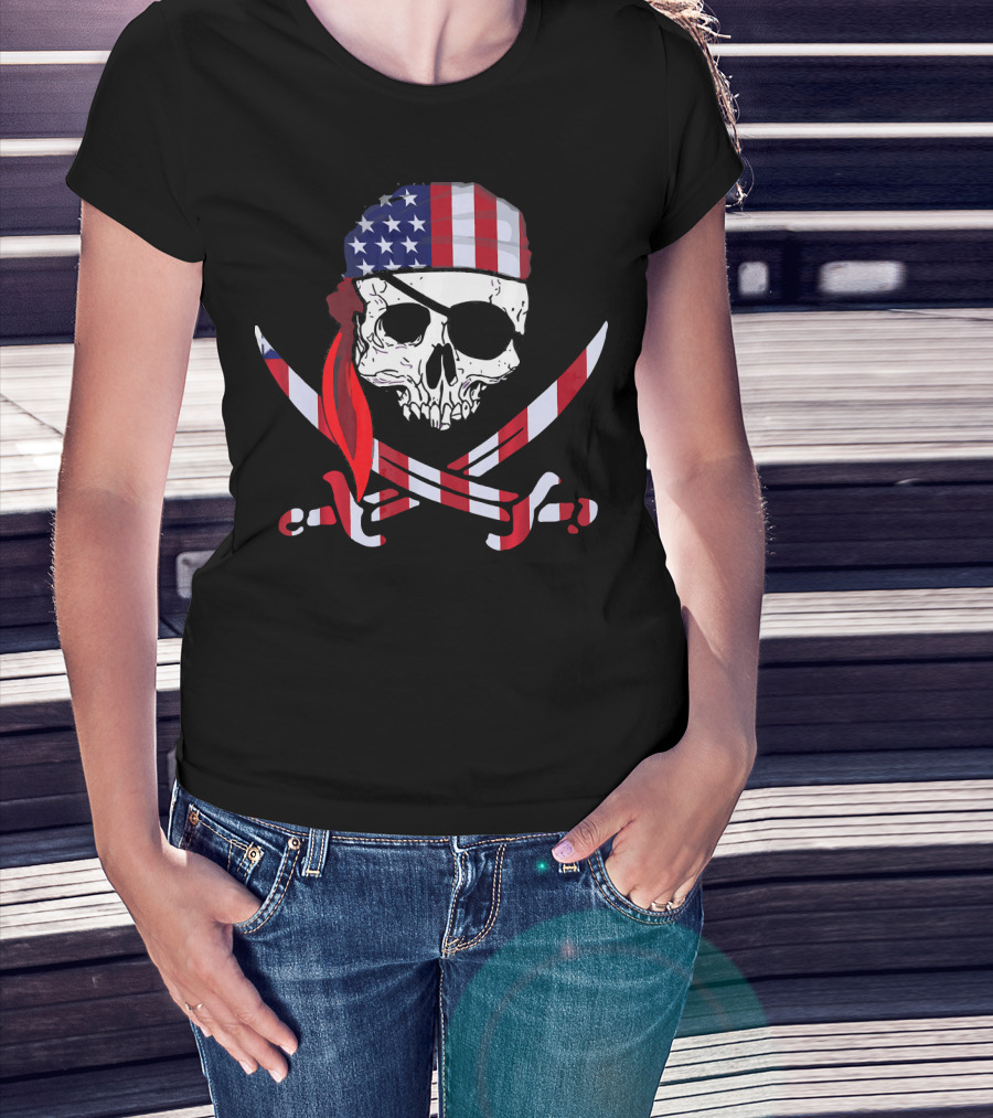 Cool Skull American Flag Pirate Patriotic T-Shirt