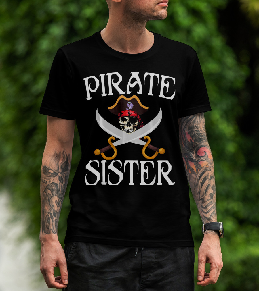 Pirate Sister Crossbones Skull Captain Hat Swords T-Shirt