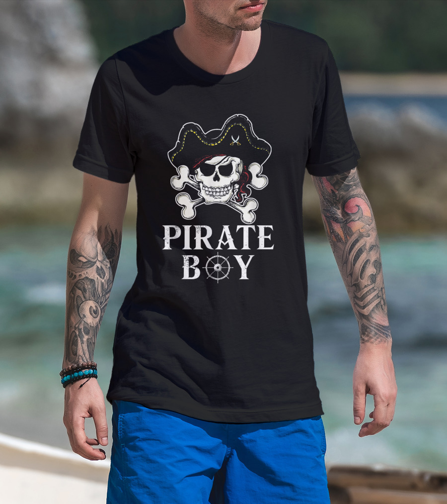 PIRATE BOY Skull Crossbones Hat Steering Wheel T-Shirt