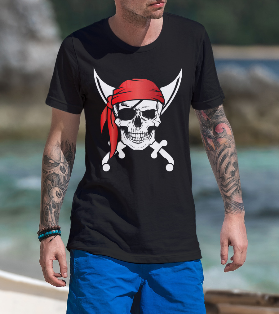 Pirate Skull Red Bandana Crossed Knives Iconic T-Shirt