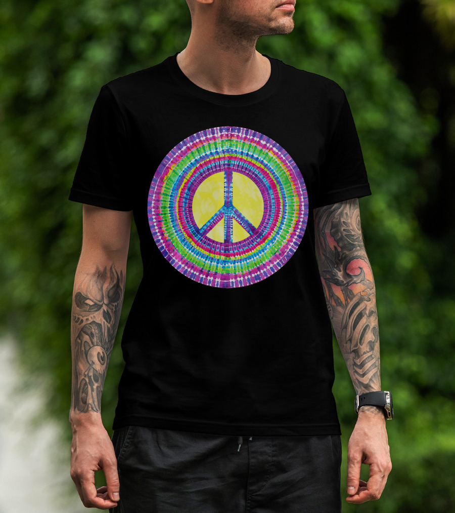 The Tie Dye Peace Sign Tye Die Cool Psychedelic Rainbow T-shirt is designed for everyday wear and a consistent fit. Fabric is pre-shrunk ring-spun cotton with durable stitching. See the size chart below for exact measurements.