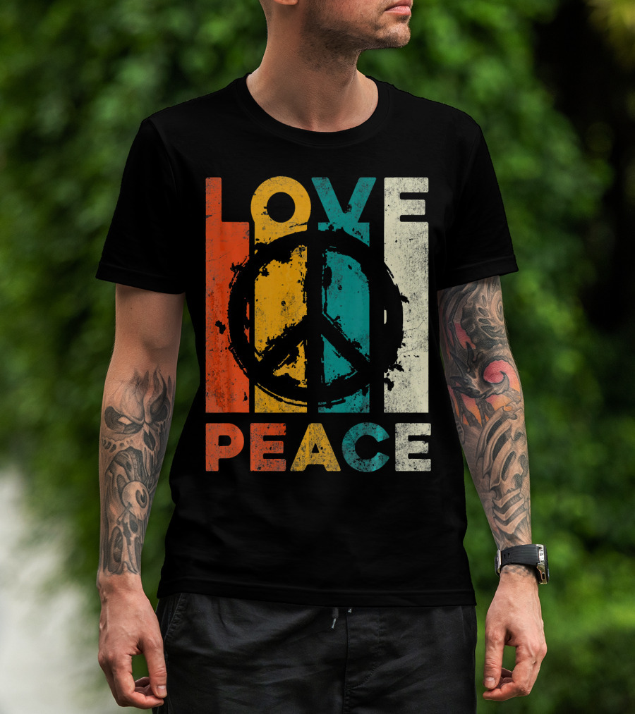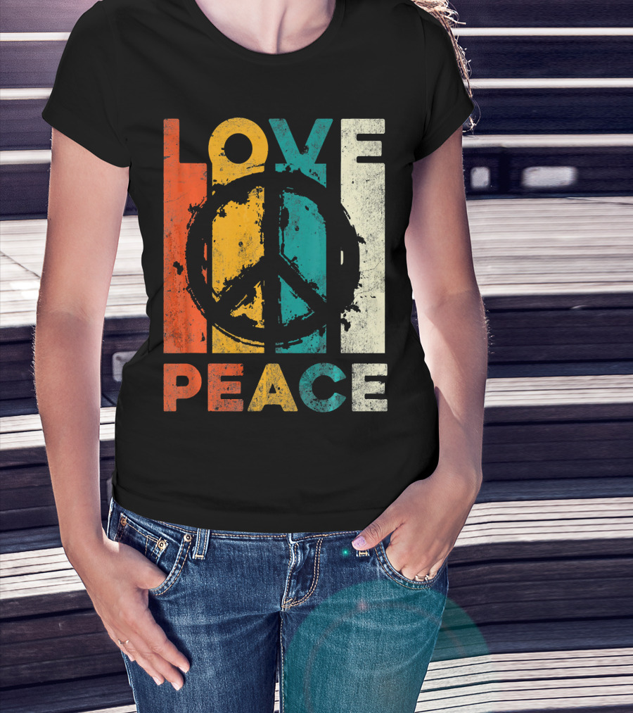 The Love Peace Retro 60s 70s Vibe with Tie Dye Peace Sign T-shirt is designed for everyday wear and a consistent fit. Fabric is pre-shrunk ring-spun cotton with durable stitching. See the size chart below for exact measurements.