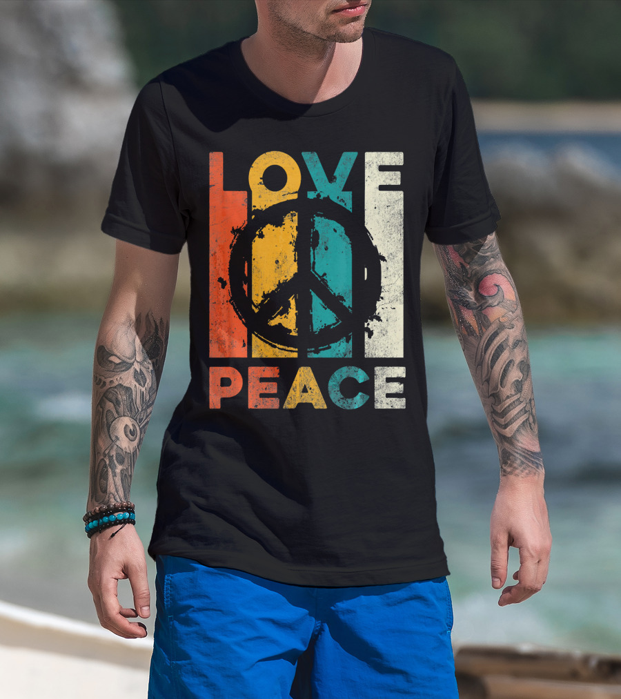 Love Peace Retro 60s 70s Vibe With Tie Dye Peace Sign T-Shirt