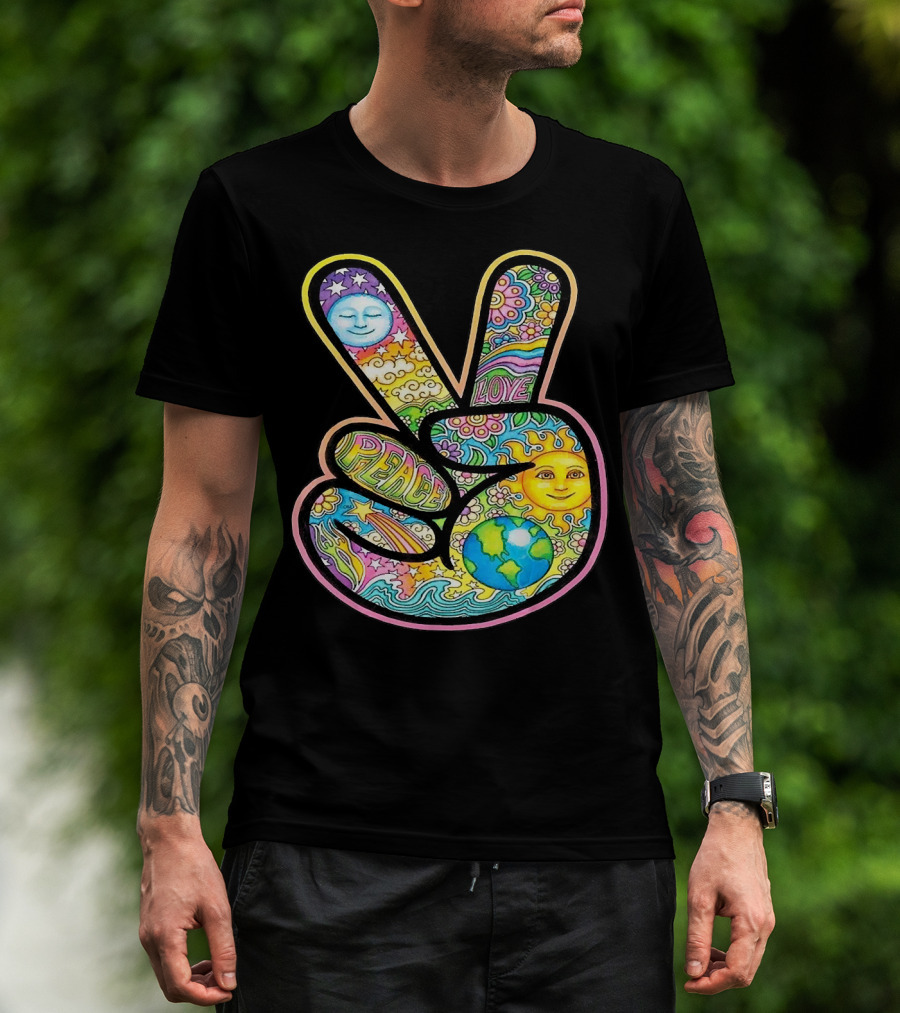 The Peace Love Trippy Sun and Moon Psychedelic Earth Groovy Harmony T-shirt is designed for everyday wear and a consistent fit. Fabric is pre-shrunk ring-spun cotton with durable stitching. See the size chart below for exact measurements.