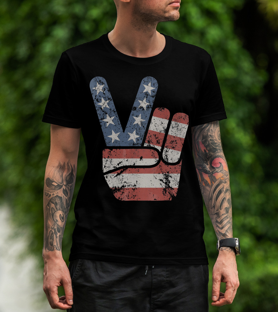 USA Big Peace Hand Sign American Flag T-Shirt