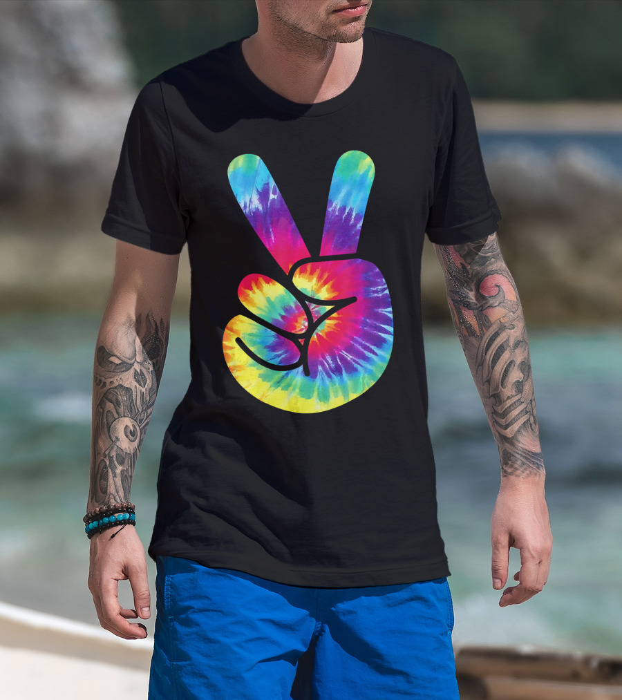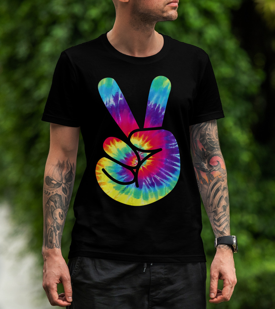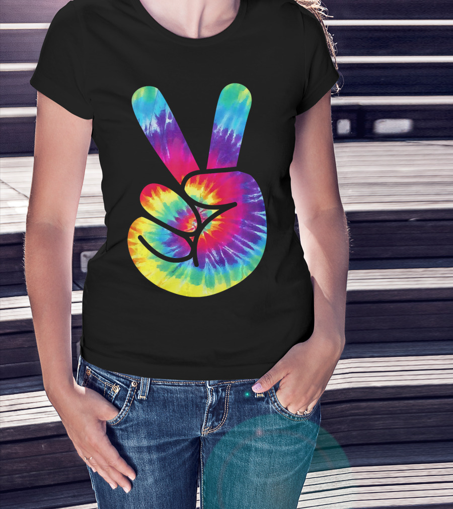 Groovy Tie Dye Peace Sign Two Finger Gesture T-Shirt