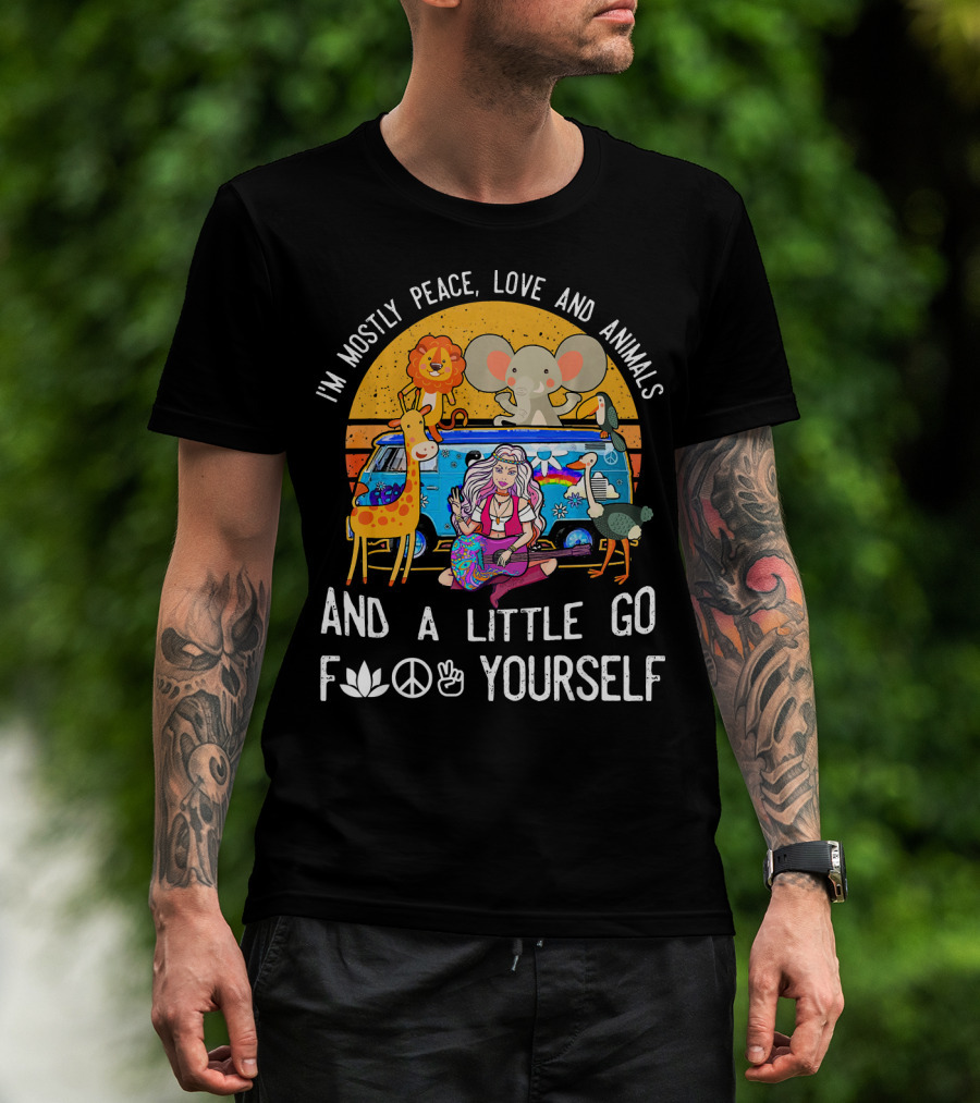 I'm Mostly Peace Love Animals And A Little Go F🌸✌️✊ Yourself T-Shirt