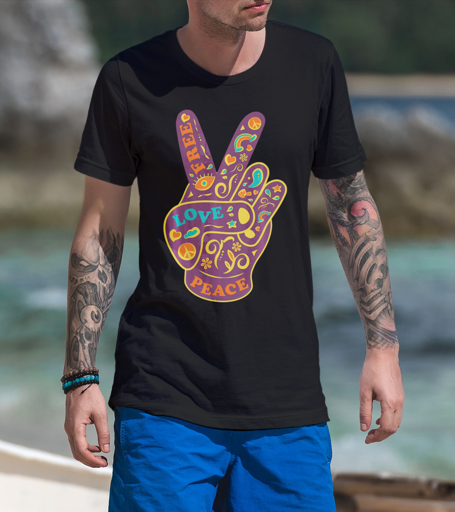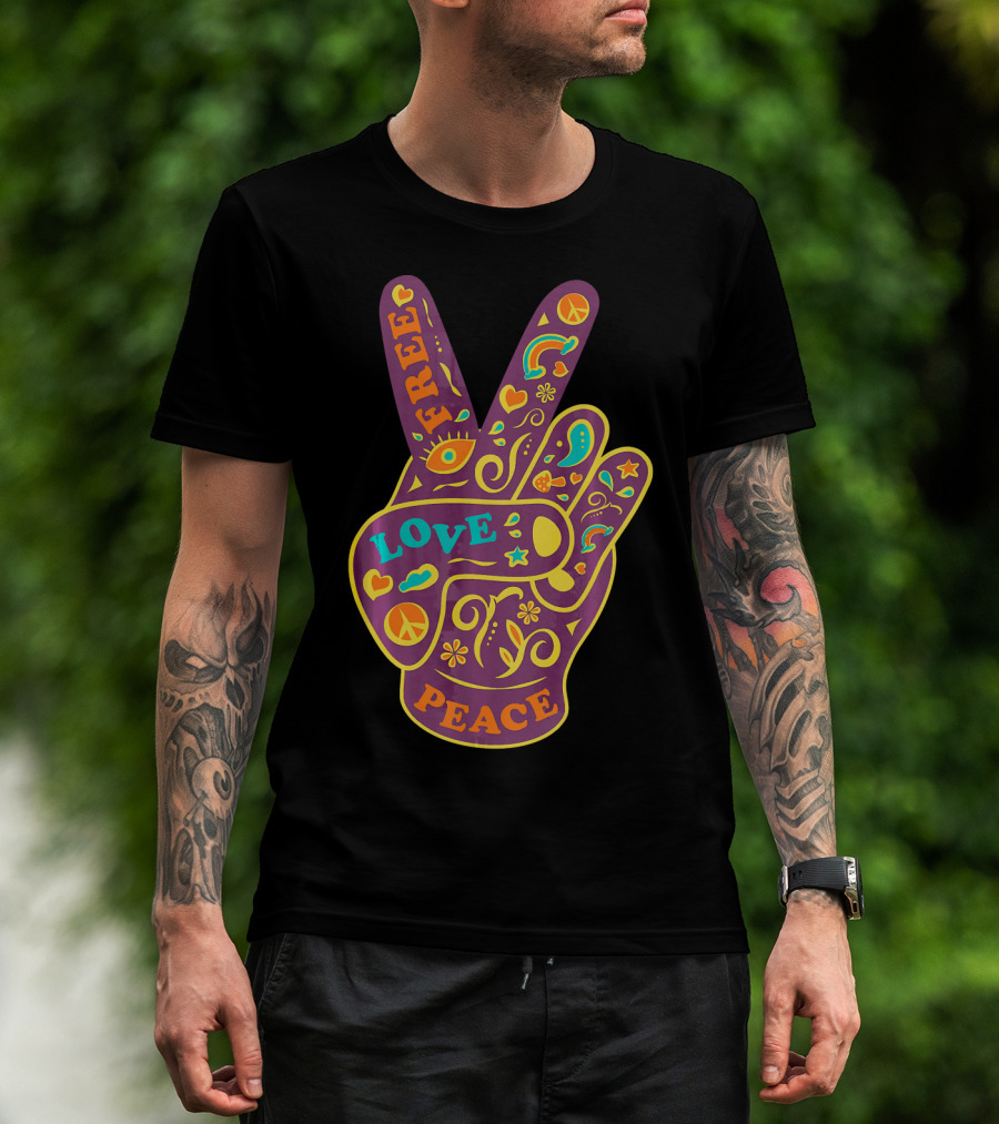 Free Love Peace Bohemian Boho Chic Peace Sign Hand T-Shirt