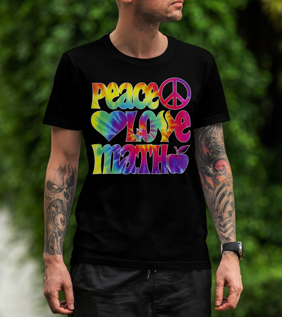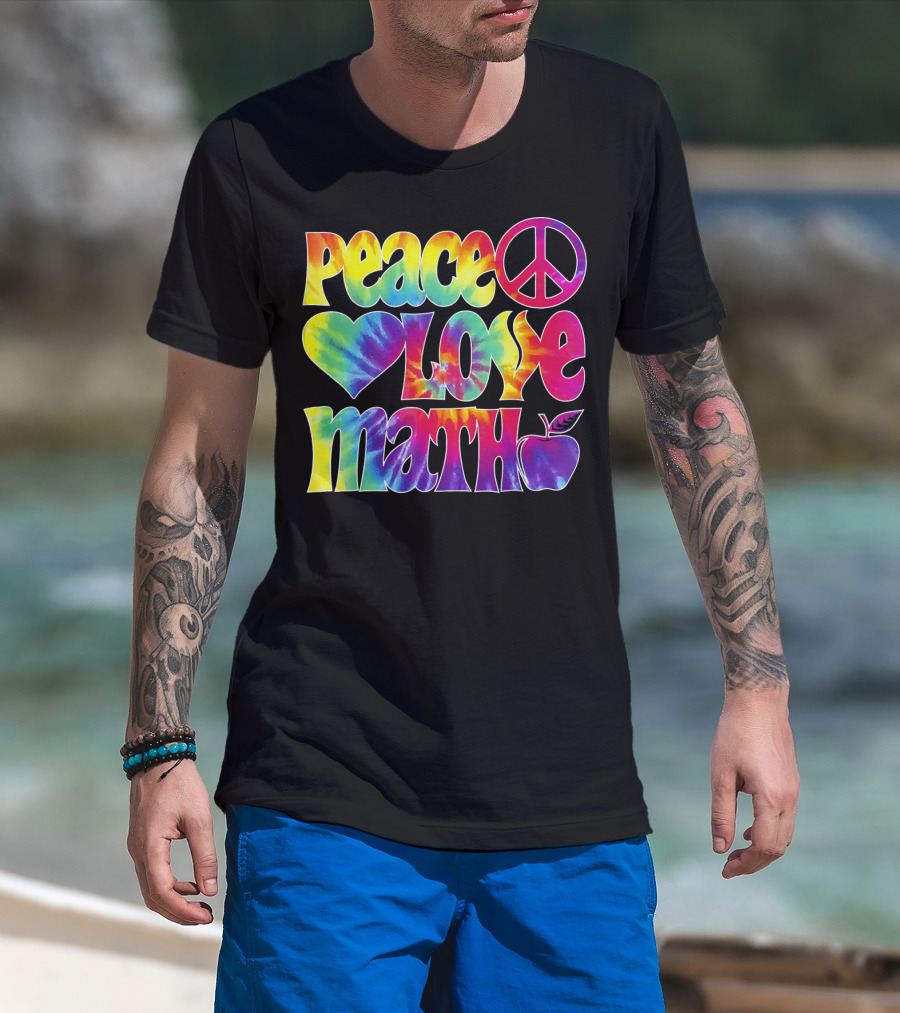 Peace Love Math Teacher Tie-Dye Symbols T-Shirt