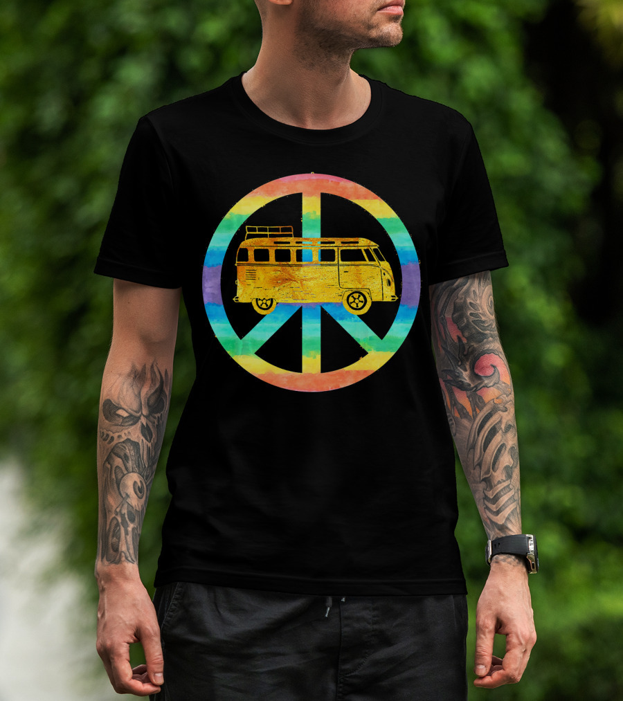 Vintage Hippie Bus Rainbow Van Peace Sign T-Shirt