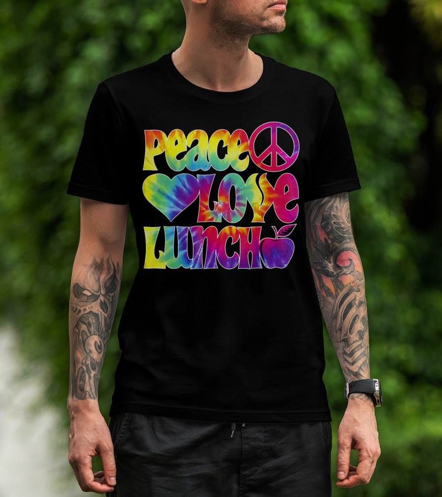 Peace Love Lunch Tie-Dye Apple Decor T-Shirt